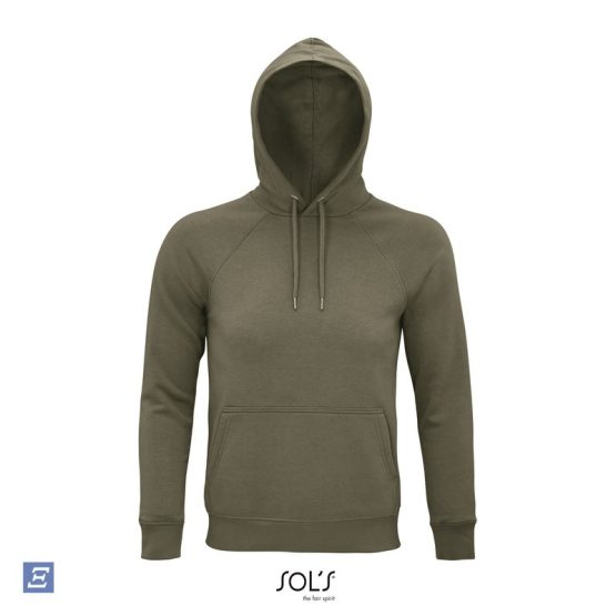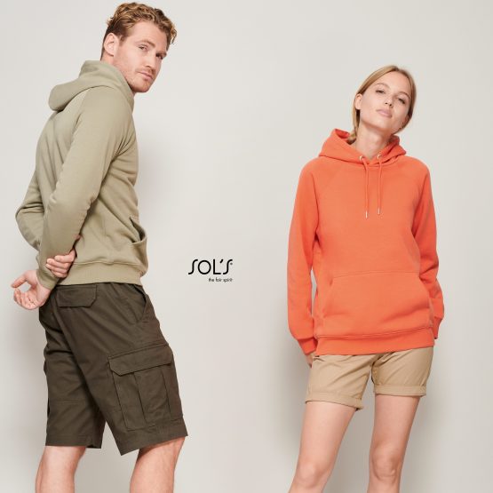 Σύνθεση: Φούτερ 280g/m² – 3 νήματα – 80% Οργανικό Βαμβάκι – 20% Ανακυκλωμένο Πολυέστερ, Βουρτσισμένο εσωτερικό – Εξωτερικό: 100% Οργανικό βαμβάκι